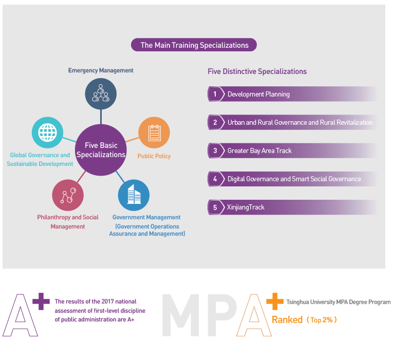 Tsinghua University is one of the earliest 24 universities accredited by the State Council to offer professional MPA degrees in China in 2001.In 2013, our MPA program became the first internationally certified public management master’s program by the Network of Schools of Public Policy, Affairs, and Administration (NASPAA) outside the United States. On July 26, 2018, the Academic Degrees and Graduate Education Development Center of the Ministry of Education announced the results of the first national professional degree assessment: the professional degree education of public administration at Tsinghua University was awarded A+ (Top 2%). In 2022, the MPA program became the first Chinese MPA program to receive the NASPAA reaccreditation in China.