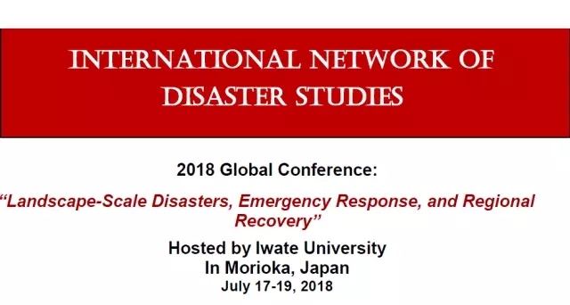 Iwate University, has generously committed to host this conference from July 17-19, 2018, in its home city of Morioka, Japan. (Morioka is located about two hours north of Tokyo by high-speed train connection.) The conference theme will be Landscape-Scale Disasters, Humanitarian Response, and Regional Recovery. A “call for papers” accompanies this letter.