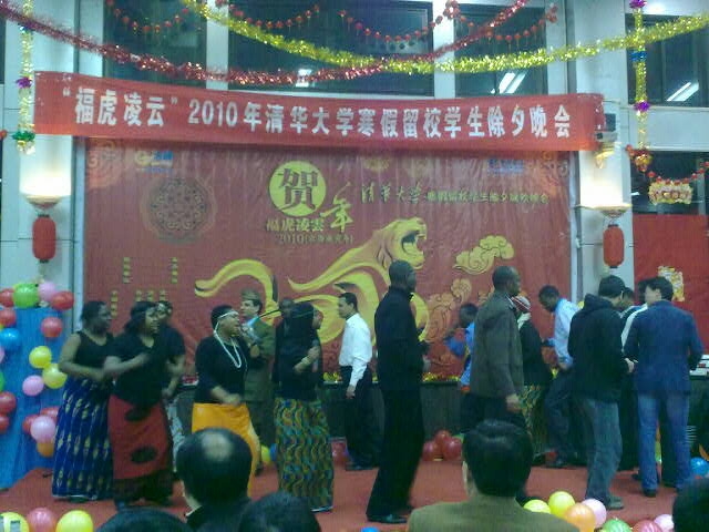On February 13, the eve of the Chinese New Year, the university hosted its annual New Year's Eve party for students who have decided to stay on campus during the winter vacation.  University officials, Hu Heping, Zhang Fengchang, Han Jingyang, and Zong Kai attended the event.  Approximately 40 of our international students joined the celebration with singing and dance performances.  All students received “red packets,” traditionally given out on New Year's for good luck, from university officials.  Our students also received small gifts from Professors Xie Jin and Meng Bo of SPPM.