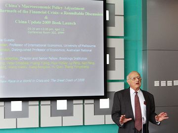 Max Corden, Professor of International Economics at the University of Melbourne, and Ross Garnaut, Distinguished Professor of Economics at the Australian National University gave keynote speeches on China’s exchange rate policy choices, and the causes of the financial crisis, in addition to the implications of China’s economic development on its macroeconomic adjustment.