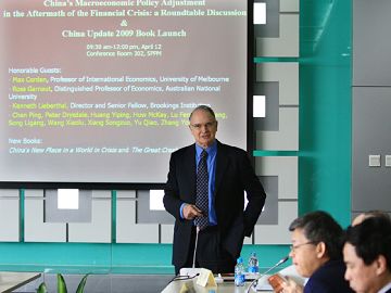 On the morning of April 12, 2010, the Brookings-Tsinghua Center for Public Policy and the Australian National University (ANU) co-hosted a roundtable discussion on “China’s Macroeconomic Policy Adjustment in the Aftermath of the Financial Crisis” and the book launches of China’s New Place in a World in Crisis and The Great Crash of 2008 as part of China Update 2009. The books were published by the ANU E Press, Brookings Institution Press, and the Social Sciences Academic Press (SSAP) of the China Academy of Social Sciences (CASS).