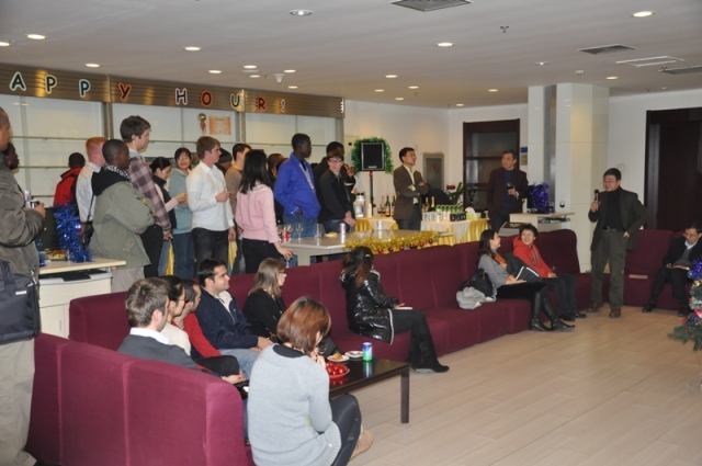 On December 22, 2010, the School of Public Policy and Management hosted its annual Christmas party for students and faculty. Dean Xue Lan oversaw the festive proceedings and wished the students from the MID and IMPA programs a joyous holiday season. The Dean introduced Professor Wang Feng, Director of the Brookings-Tsinghua Center for Public Policy, and Professor Yu An, Director of the Institute of Government Management and Innovation, who, along with their holiday greetings, spoke about their course offerings next term. Professor Wang also graced the proceedings with his presentation of China’s population policy at the crossroads, as well as the research topics of the Brookings-Tsinghua Center.