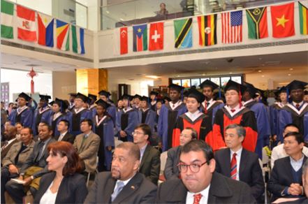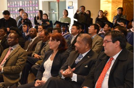 SPPM Commencement for 2014 Spring Semester was held on Tuesday, January 21 in the lobby of the school. Over 100 people witnessed this important and meaningful event. Besides the 82 graduates, others in attendance were faculty lead by Professor Xue Lan and Professor Meng Qinguo, 12 diplomats from 11 foreign embassies, representatives from MCC Overseas Ltd., staff members, alumni, family members and friends.