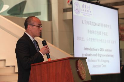 Associate Dean Ms. Meng Bo, as the host, warmly welcomed all the participants and congratulated all the graduates. Then Professor Wu Yongping, Associate Dean, also the Chairman of the School Sub-degree Committee announced the degrees conferred this semester.