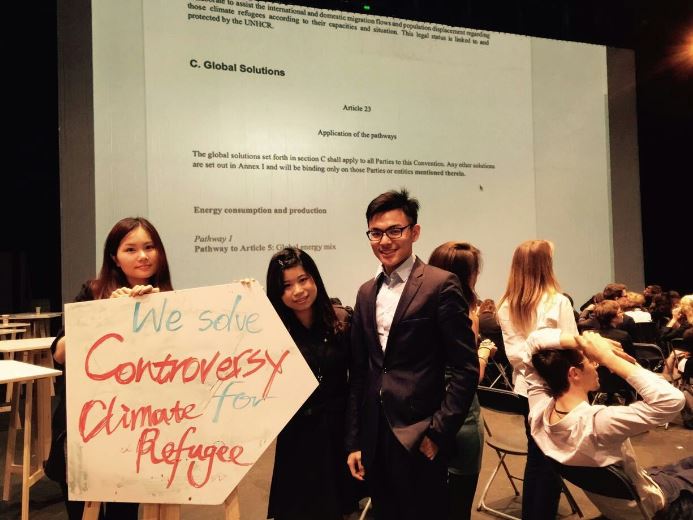 Two years ago, I participated in a Model UN Conference negotiating the measures to deal with post Rwanda Massacre crisis in 1994. It was about amending UN’s mistake of procrastination in the past. However, in COP21: Make it Work Paris Climate, it is the first time for me to have a direct and complete taste of the democratic system and critical thinking over the design of the discussion modes revolutionary from any of established ones. It is the first time that I am directly involved in the victims of the climate change – climate refugees. What a dramatic surprise that all delegation passed our proposal of admitting the legal status of climate refugees! As John Donne writes, ‘any man’s death diminishes me, because I am involved in the mankind’. After COP21, I not only felt the threat that endangers the homes of Inuit and Maldives, but also spend more time considering practical methods of helping them. Therefore, through COP21, we will not be disappointed at the inability to correct human’s mistakes in the past, instead, we are inspired because we are able to actively shape our future.
