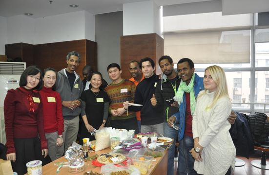 Although there was heavy snow, nearly 30 international students and 50 Chinese MPA students attended the event and brought food from their home countries and provinces. Associate Dean, MS. MENG Bo kicked off the event with a documentary called “A Bite of China”, and hope students can obtain more understanding of each other through food from their hometowns. The event was also held right before Thanksgiving, thus American and Canadian students shared the meaning of thanksgiving and also gave thanks to classmates, faculties, and staff.