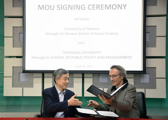 Xue Lan, Dean of SPPM, and Bernard Debarbieux, Dean of G3S, jointly concluded the MOU between the two schools to establish a partnership including an exchange program of students pursuing a Master Program delivered by each party respectively for the academic years 2017-2019.