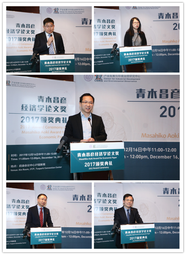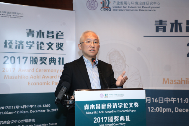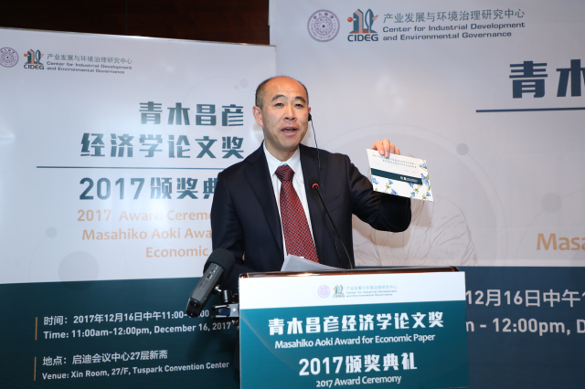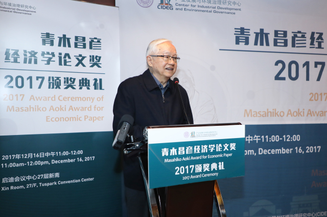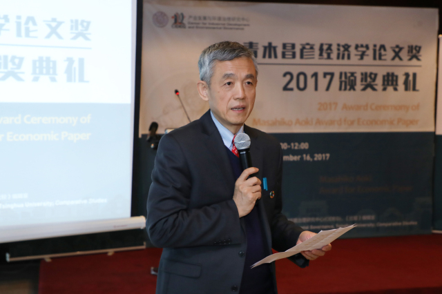 The first “Masahiko Aoki Award for Economic Paper”, jointly organized by the Center for Industrial Development and Environmental Governance (CIDEG)at Tsinghua University and Comparative Study, officially called for papers in July, 2017. Until October 1, there were totally 36 high quality papers, of which 35 scholars were from Japan, Australia, Hong Kong, domestic universities and research institutes submitted papers. After more than 2 months of first round and second round review, the winner has come into being. On the morning of December 16, 2017, the award ceremony of “Masahiko Aoki Award for Economic Paper” was held at the Tuspark Convention Center.