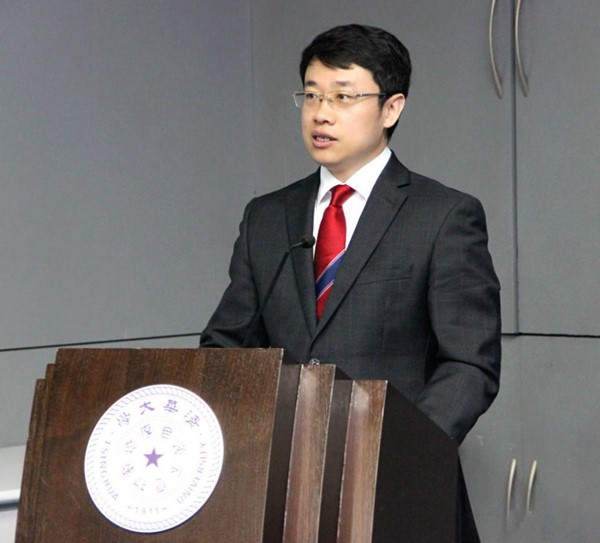 The picture shows Professor Wang Yahua, Associated Dean of the School of Public Policy and Management, Tsinghua University, introducing the program.
