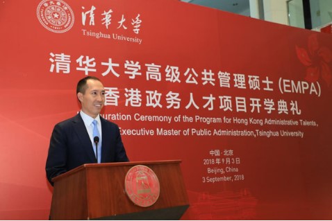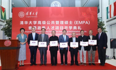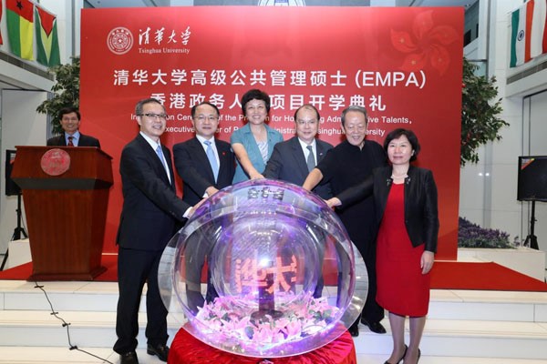 At the end of the inauguration ceremony, Wang Zhimin, Director of the Liaison Office of the Central People's Government in the Hong Kong S.A.R., Wang Guangya, Standing Member of National People's Congress Standing Committee and Chairman of National People's Congress Overseas Chinese Affairs Committee, Chen Xu, Secretary of the CPC Tsinghua University Committee,Matthew Cheung Kin-chung, Chief Secretary for Administration of Hong Kong Special Administrative Region and other leaders, Liu Jin, Director of Hong Kong, Macao and Taiwan Affairs Office of the Ministry of Education, Chen Jiguang, Director of Hong Kong and Macao Affairs Office of the State Council Liaison Department took the stage to launch the EMPA Program.