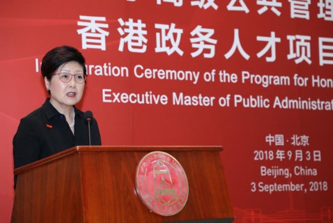 On behalf of Tsinghua University, Chen Xu congratulated the start of the project and welcomed the first intake of this program. Chen Xu said that the EMPA Program is the first master's program of public administration in mainland China targeting students from the Hong Kong Special Administrative Region and is of great innovative significance. She expressed sincere wish that the first intake of this program will uphold the excellent tradition of Tsinghua University, pursue the ideological realm of " cultivate the morality to serve the public ", face the forefront of China's reform practice and the needs of Hong Kong's governance practice in the new era, strive to become a first-class senior public management talent, contribute wisdom and strength to promote the development and progress of the country in the new era and create a better future for Hong Kong.