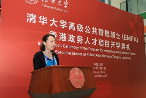 POON Kit, Professor of Tsinghua SPPM and Director of the EMPA Program reviewed her political experience in Hong Kong in her speech. She stressed that three prerequisites are needed for a good public service in Hong Kong: rich cultural deposits, adept public management skills and clear version of values. This program is an innovative measure tailored to the cultivation of high-end administrative talents in Hong Kong. It combines theoretical, practical, professional and cutting-edge features. "We sincerely hope that students can improve in all three aspects through learning." POON Kit said.