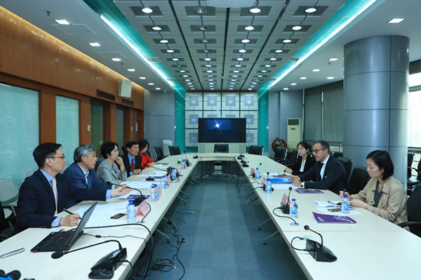 Prior to the meeting, Xu Chen, Secretary of the CPC Tsinghua University Committee met with President Frédéric Mion and his delegation. Jiankun He, Director of the Academic Committee of the Institute of Climate Change at Tsinghua University, Jinliang Li, Director of the International Department, Zongchao Peng, Chairman of the School Council of the School of Public Policy & Management, Xufeng Zhu, Associate Dean of the School of Public Policy & Management attended the meeting.