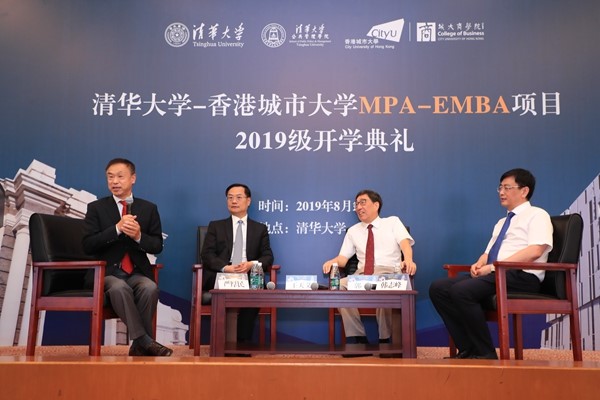 On the morning of August 24, the 2019 class opening ceremony and seminar of Tsinghua-CityU MPA-EMBA program was held in Tsinghua University. Way Kuo, president of City University of Hong Kong, Yang Bin, Vice President and Provost of Tsinghua University, Jiang Xiaojuan, Dean of Tsinghua SPPM, Yan Houmin, Dean of the College of Business, and Zhao Baige, chairman of the expert committee of the Belt and Road International Think Tank, Chinese Academy of Social Sciences, Wang Tianyi, President of China Everbright International and Co-Director of the Center for Public-Private Partnership at Tsinghua University, and Han Zhifeng, Deputy Director of the Investment Department of the National Development and Reform Commission, as well as other leaders and guests attended the event. The event was hosted by Yang Yongheng, Associate Dean of Tsinghua SPPM.
