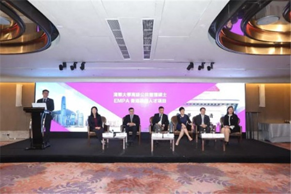 In the morning of November 28, the Tsinghua University " Guangdong-Hong Kong-Marco Greater Bay Area Public Management and Executive Talents Training " Forum and the Promotion of High-end Program of the School of Public Policy & Management, sponsored by the School of Public Policy and Management, Tsinghua University and co-sponsored by the School of Business, City University of Hong Kong and the Tsinghua Alumni Association Hong Kong, were solemnly held in Hong Kong.