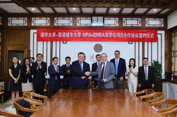 Signing ceremony of Tsinghua-CityU MPA–EMBA Dual-Degree Program agreement Photograph by Cao Wenpeng