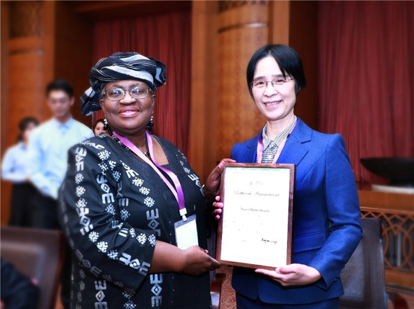 Jiang Xiaojuan, Dean of Tsinghua SPPM awarded Ngozi Okonjo-Iweala a letter of appointment