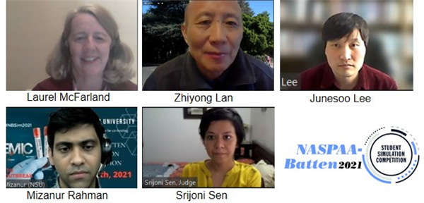 On February 27 and March 6, more than 400 graduate students from around the globe competed in a real-time simulation to stop the next infectious disease outbreak during the 2021 NASPAA-Batten Student Simulation Competition. School of Public Policy and Management (SPPM) at Tsinghua University, KDI School of Public Policy and Management (KDIS), North South University (NSU, Bangladesh), National Law School of India University (NLSIU, Bangalore) co-hosted the second day of the competition virtually.