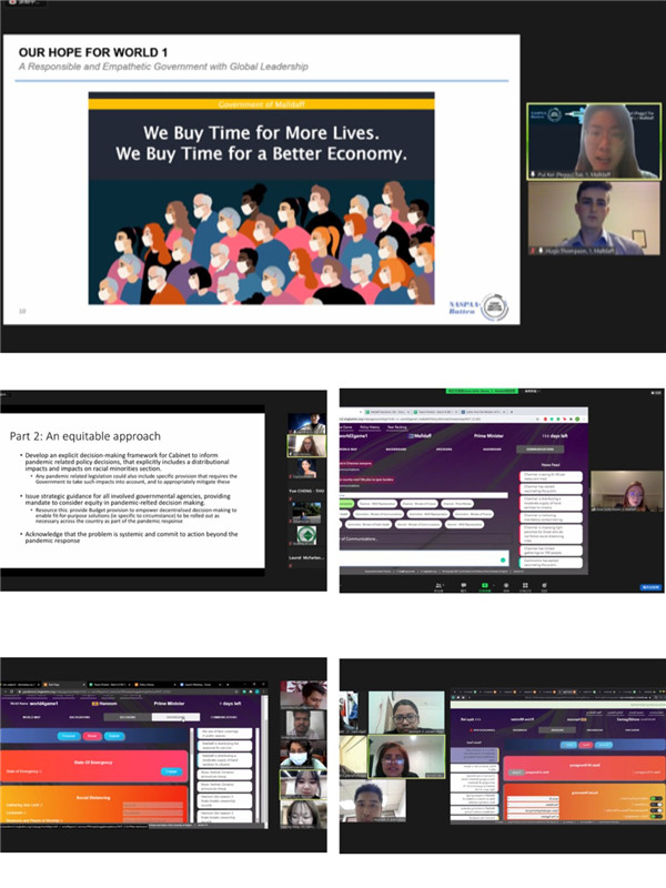 At the end of the day, the World 1 Malldaff Team won the regional championship, and the World 3 Malldaff Team became the runner-up. Tse Pui Kei (Peggy) and Hao Zha, students from Tsinghua SPPM, were members of the champion and runner-up teams respectively. Regional winners will compete in a global "All Star" round navigating through the next iteration of the simulation in the coming days.