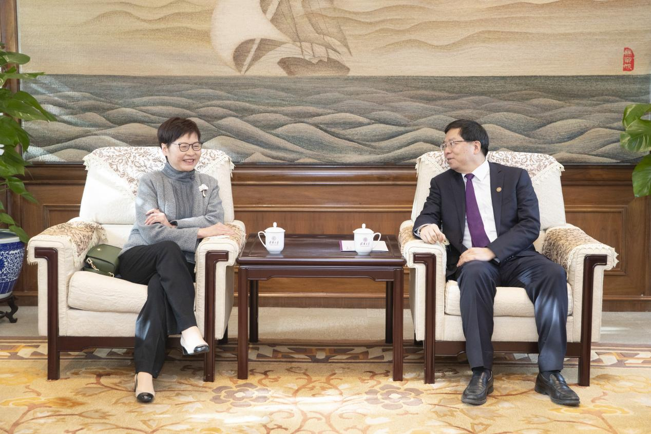 Madam Carrie Lam showed her approval for Tsinghua University’s achievements in recent years, and introduced the significant measures implemented by Hong Kong SAR Government to foster development in science and technology, and strengthen cooperation and partnerships. She expressed her future hopes for both sides to further use well Hong Kong SAR as a platform, to continue deepening their collaborations, and to cultivate young talents who love China and Hong Kong SAR and harness global competence.