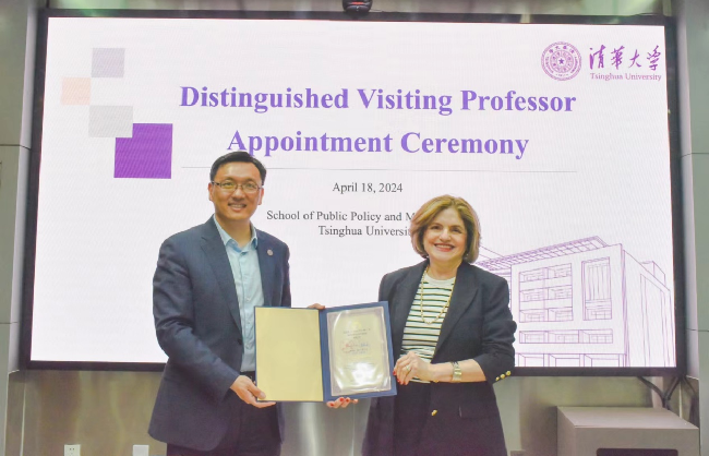 Professor Iris Geva-May delivered her acceptance speech, expressing her gratitude to Tsinghua University and Tsinghua SPPM, as well as her full recognition of the rigorous academic attitude of the faculty and students. She looked forward to strengthening cooperation with more outstanding scholars from Tsinghua SPPM.