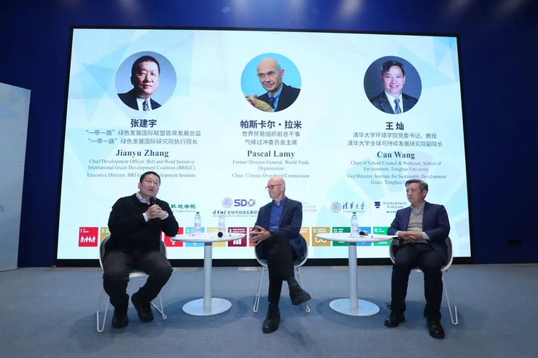 This forum was delivered by Pascal Lamy, former Director-General of the World Trade Organization and Chairman of the Climate Overshooting Commission; Xue Lan, Director of TUSDG and Dean of Schwarzman College, Tsinghua University delivered a opening speech; Wang Can, Chair of School Council and Professor of School of Environment, Tsinghua University, and Vice Director of TUSDG participated in the penal discussion; and Zhang Jianyu, Chief Development Officer of Belt and Road Initiative Green Development International Coalition and Executive Director of BRI Green Development Institute, hosted the forum. The forum was attended by more than one hundred teachers and students from different fields. Before the meeting, Zhu Xufeng, Dean of School of Public Policy and Management of Tsinghua University and Executive Director of TUSDG, met with Lamy with the guests.