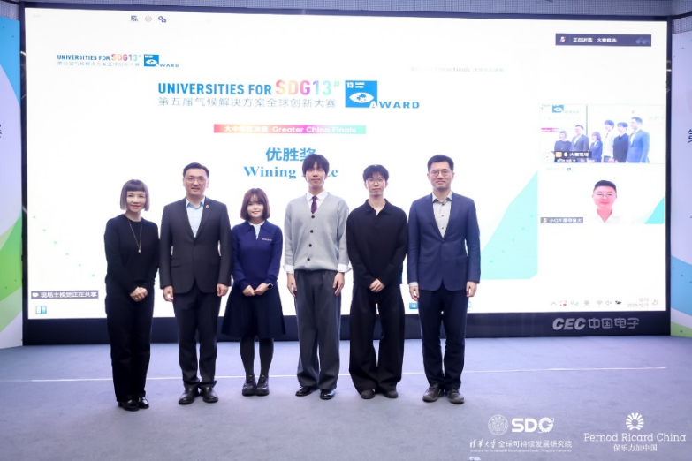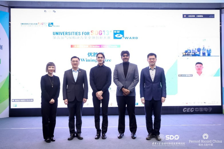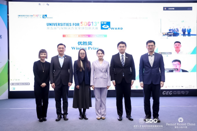 On December 7th 2025, the 5th Universities for Goal 13 Award (UG13) Greater China Finals, organized by the Institute for Sustainable Development Goals of Tsinghua University (Tsinghua SDG Institute) and supported by Pernod Ricard China, was held successfully in the Auditorium Hall of the School of Public Policy and Management, Tsinghua University.
