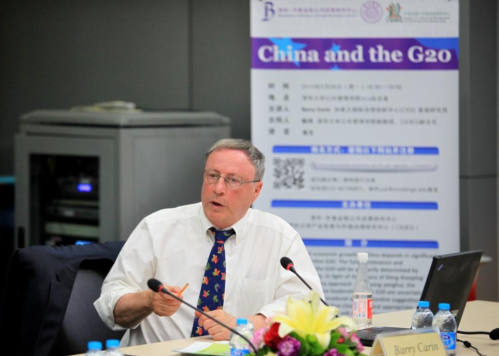 Dr. Barry Carin suggested China should put forward the reform package agenda to contribute to G20 and global governance during China’s G20 presidency which is coming in 2016. The applicable proposals include reinforcing the regulation of shadow banking, narrowing the gap between global governance and internet governance, reforming organizational design and procedures in the G20, and offering a top-down solution to global climate change so as to finally propose a new goal and framework for global governance.