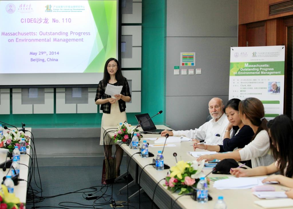 May 29th 2014, Dr. Clark. Abt, Professor of Brandeis University and Adjunct Professor of Harvard University, gave a lecture entitled on “Outstanding Progress on Environmental Management in Massachusetts” at the School of Public Policy and Management of Tsinghua University. The event was held by CIDEG (the Center for Industrial Development and Environmental Governance). Dr. DAI Yixin, Assistant Professor of SPPM at Tsinghua University, hosted the event.