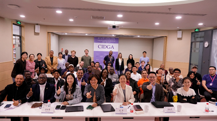 On the afternoon of September 30, the International Master of Public Administration (IMPA) series programs from the School of Public Policy and Management at Tsinghua University (Tsinghua SPPM) visited the College of International Development and Global Agriculture (CIDGA) at China Agricultural University to conduct an academic exchange activity. More than 30 international students from the three IMPA programs (IMPA-MOFCOM, IMPA-BRI and IMPA-Future Leaders), as well as more than 10 international students from other Chinese and English programs of Tsinghua SPPM, participated in the event. The activity was organized and implemented by the Academic Director of the IMPA programs and Associate Professor Zheng Zhenqing, as well as the International Program Manager of the Office of International Cooperation and Exchange of Tsinghua SPPM. The Executive Dean of CIDGA, Professor Wu Jin, Vice Dean, Professor Tang Lixia, and the coordinator of the international student program, Associate Professor Wang Yanlei joined the event. The event was presided by Professor Wu Jin.