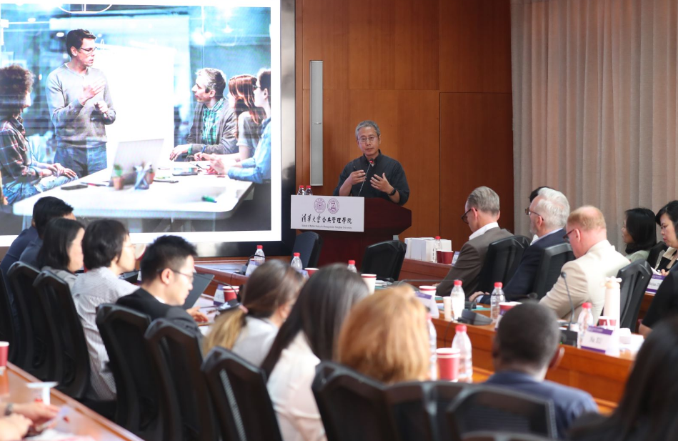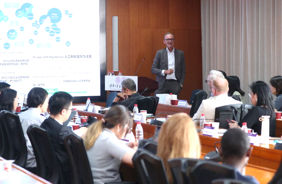 On the afternoon of June 5th, IBM Global Trust & Chief Compliance Officer Hans Vad Hansen and IBM Chief Technology Officer and Vice President of IBM GCG R&D Labs, Xie Dong, led a team to visit the School of Public Policy and Management of Tsinghua University (hereinafter as “Tsinghua SPPM”). They had in-depth exchanges with faculty and students and delivered a lecture on the topic of “Ethics in the Age of Artificial Intelligence.” Zhu Xufeng, Dean of Tsinghua SPPM and Director of the Center for Science & Technology Development and Governance of Tsinghua University, hosted the exchange session and delivered a welcome remarik. Liang Zheng, Professor of Tsinghua SPPM and Director of the Center for AI Governance of Tsinghua University, and Chen Ling, Professor of Tsinghua SPPM and Director of the Center for Industrial Development and Environmental Governance, attended the event. Chen Tianhao, Associate Professor of Tsinghua SPPM and Assistant Director of the Center for Science, Technology Development and Governance of Tsinghua University, hosted the lecture session. The delegation from IBM and faculty and students from Tsinghua University participated in the event.