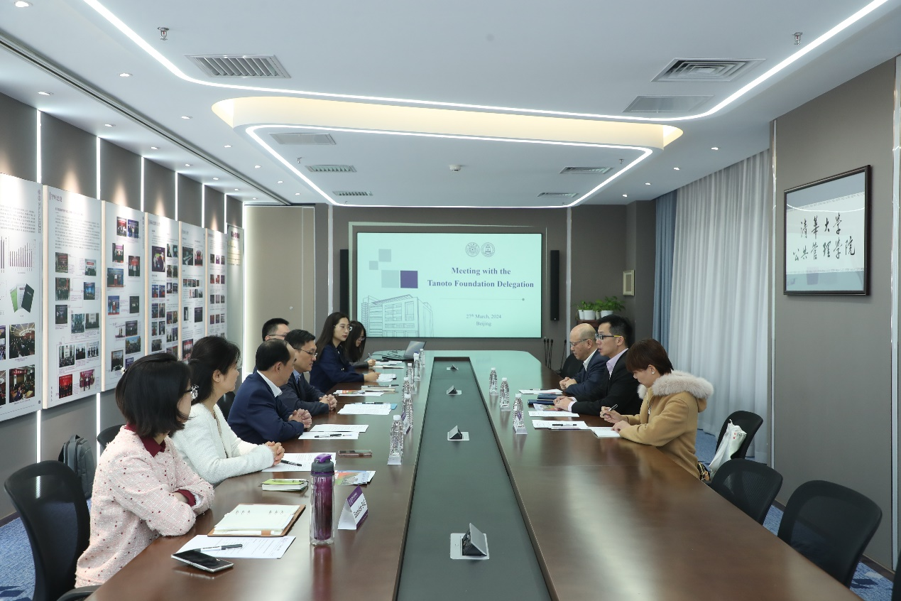 On March 27th, 2024, a delegation composed by three representatives, including Benny Lee, Board Member of Tanoto Foundation, and Wu Wei, Secretary-General of Tanoto Foundation China, visited the School of Public Policy and Management, Tsinghua University (hereinafter as Tsinghua SPPM). The distinguished guests were cordially received by Zhu Xufeng, Dean of Tsinghua SPPM, Guo Xinning, Senior Director of International Programs, Zheng Zhenqing, Academic Director of IMPA Program, and Shi Shuting, Deputy Director of the Office of International Cooperation and Exchange. The meeting was hosted by Guo Xinning, Senior Director of International Programs.