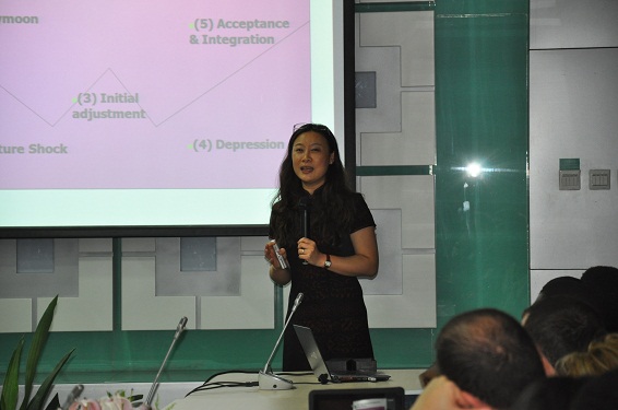 (Prof. MENG Bo, Assistant Dean, center, offered a lecture on Cross-Cultural Communication.)