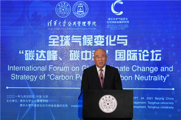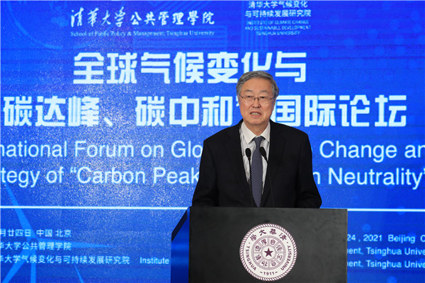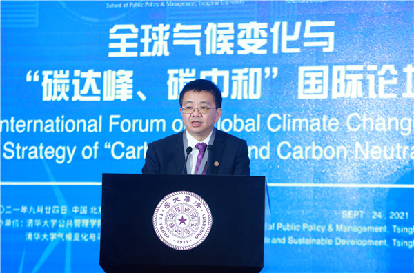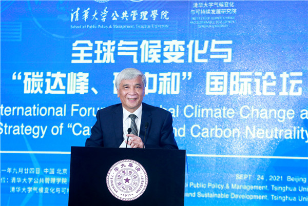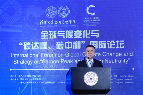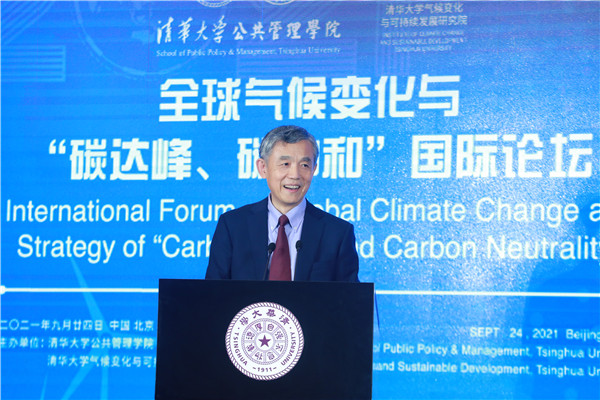 On September 24, the International Forum on Global Climate Change and Strategy of “Carbon Peak and Carbon Neutrality” was held successfully at the Reception Hall of the Main Building of Tsinghua University. The Forum is jointly sponsored by the School of Public Policy and Management and the Institute of Climate Change and Sustainable Development, Tsinghua University. This Forum is one of the series activities of Global Advisory Board of Tsinghua SPPM in 2021. Ding Zhongli, Vice-Chairman of the Standing Committee of the 13th National People’s Congress and Chairman of the Central Committee of the China Democratic Leaguel; Zhou Xiaochuan, Vice Chairman of the 12th National Committee of the Chinese People’s Political Consultative Conference and Vice Chairman of the Boao Forum for Asia; Chen Deming, Former Minister of Commerce, Former Chairman of the Association for Relations Across the Taiwan Straights, Former Vice Director of National Development, and Reform Commission, Director of the Institute of Taiwan Studies of Tsinghua University; Xie Zhenhua, China’s Special Representative on Climate Change and Vice Chairman of China Council for International Cooperation on Environment and Development; Wu Hongbo, Special Representative of the Chinese Government on European Affairs, Former Under Secretary-General of the United Nations, and Co-Director of the Institute for Sustainable Development Goals of Tsinghua University; Erik Solheim, Senior Advisor of the World Resources Institute and Former Under Secretary-General of the United Nations; Alok Sharma, Full-time President for COP 26, the 26th United Nations Climate Change Conference; Yong-Hak Kim, President Emeritus of Yonsei University and Chairman of the Board of SK Telecom; Ngaire Woods, Dean of the Blavatnik School of Government of Oxford University; Danny Quah, Chairman (International) of 2021 THU SPPM Global Advisory Board and Dean of the Lee Kuan Yew School of Public Policy, National University of Singapore; and other domestic and overseas scholars and representatives of government and international institutions were invited to attend this Forum. More than 100 persons attended this Forum, including Peng Gang, Vice President of Tsinghua University; Jiang Xiaojuan, Member of the Standing Committee of the National People’s Congress, Vice Chairperson of the Committee of Social Construction of the 13th National People’s Congress, and Dean of School of Public Policy and Management of Tsinghua University; teachers and students of Tsinghua University.