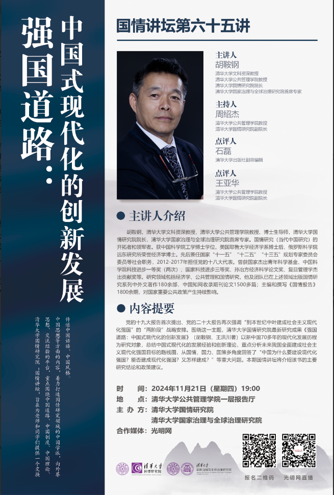 国情讲坛第65讲:强国道路:中国式现代化的创新发展(2024年11月21日 星期四 19:00-21:00)