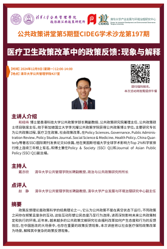 公共政策讲堂第5期暨CIDEG学术沙龙第197期:医疗卫生政策改革中的政策反馈:现象与解释(2024年12月9日 星期一 12:00-14:00)