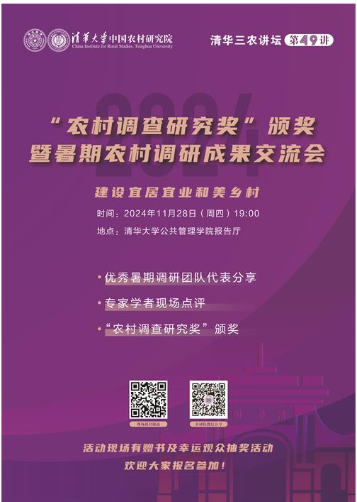 清华三农讲坛第四十九讲:2024年“农村调查研究奖”颁奖暨暑期农村调研成果交流会(2024年11月28日 星期四 19:00)
