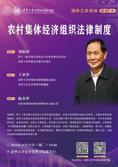 清华三农讲坛第47讲:农村集体经济组织法律制度(2024年10月22日 星期二 19:00)