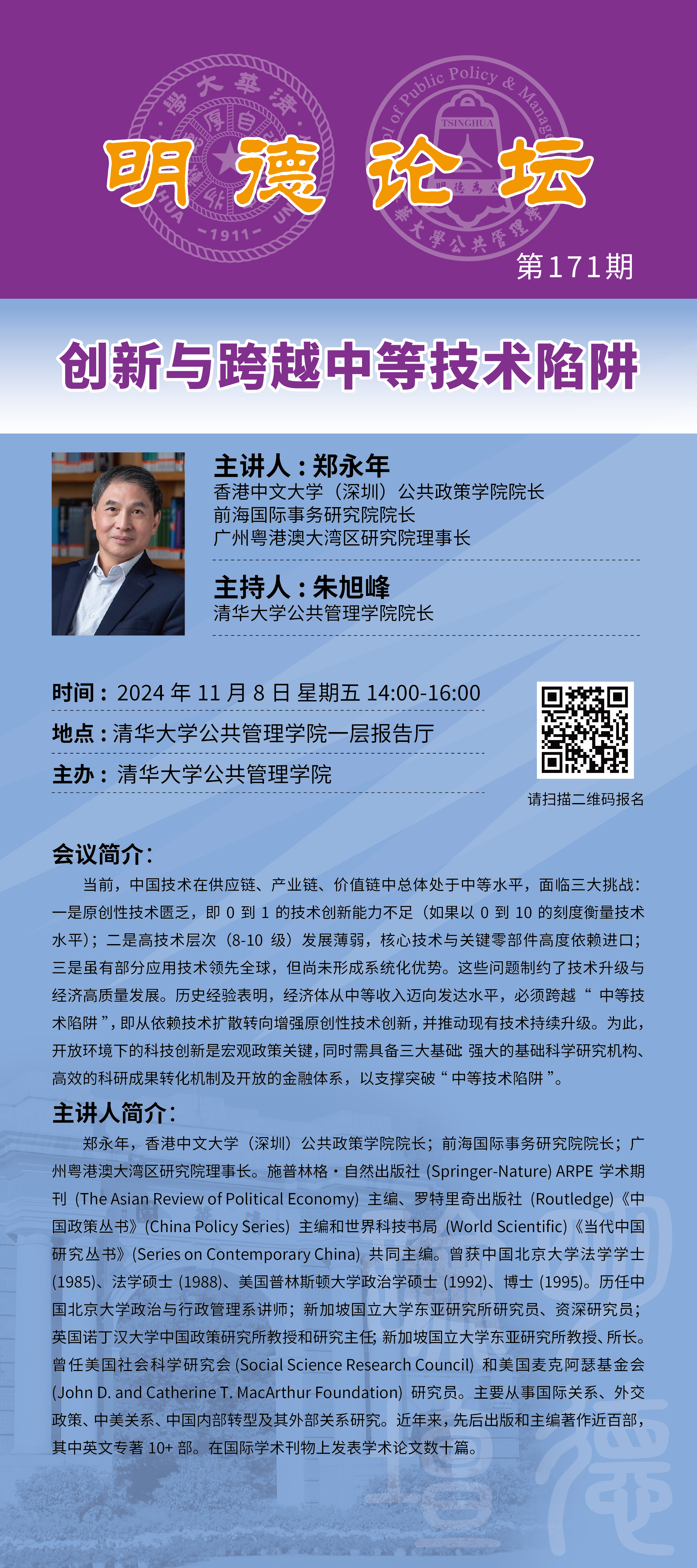 明德论坛171期:创新与跨越中等技术陷阱(2024年11月8日 星期五 14:00-16:00)