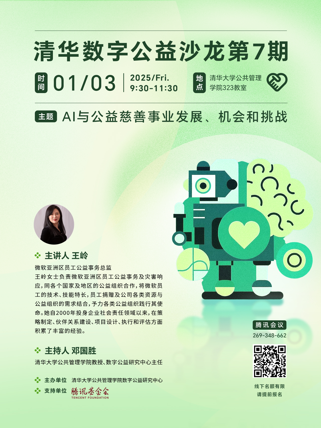 清华数字公益沙龙第7期:AI与公益慈善事业发展、机会和挑战(2025年1月3日 星期五 9:30-11:30)