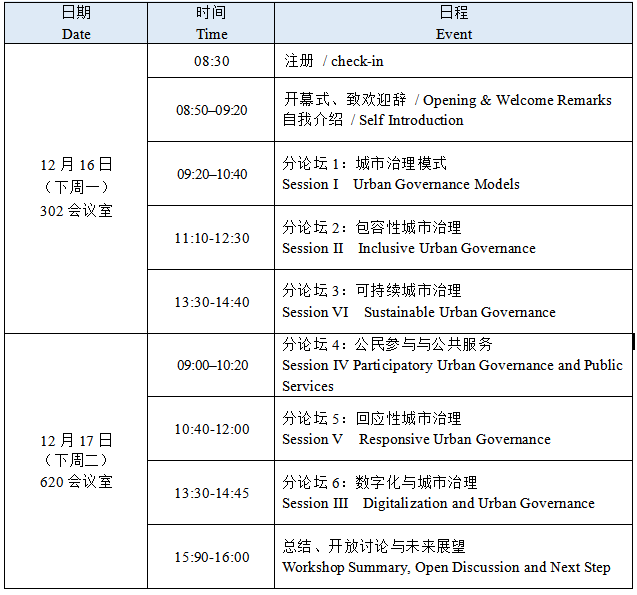 “城市治理与政策比较分析” 研讨会(12月16日-12月17日)