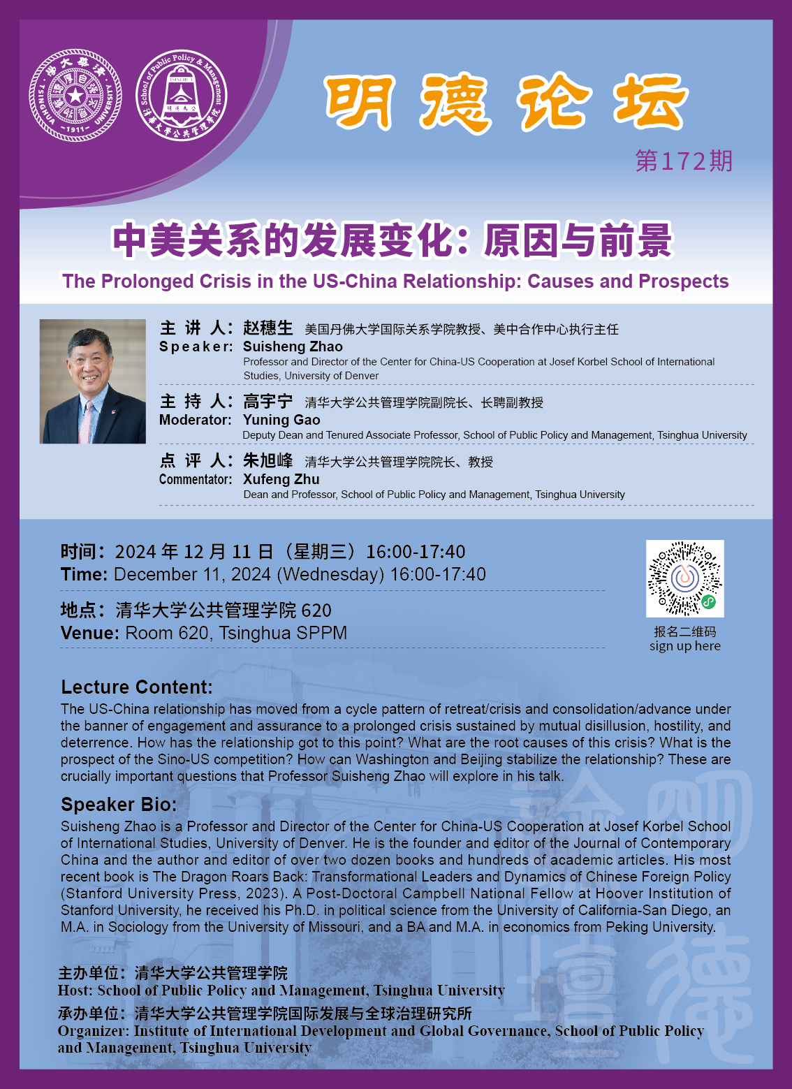 明德论坛172期:中美关系的发展变化:原因与前景(2024年12月11日 星期三 16:00-17:40)