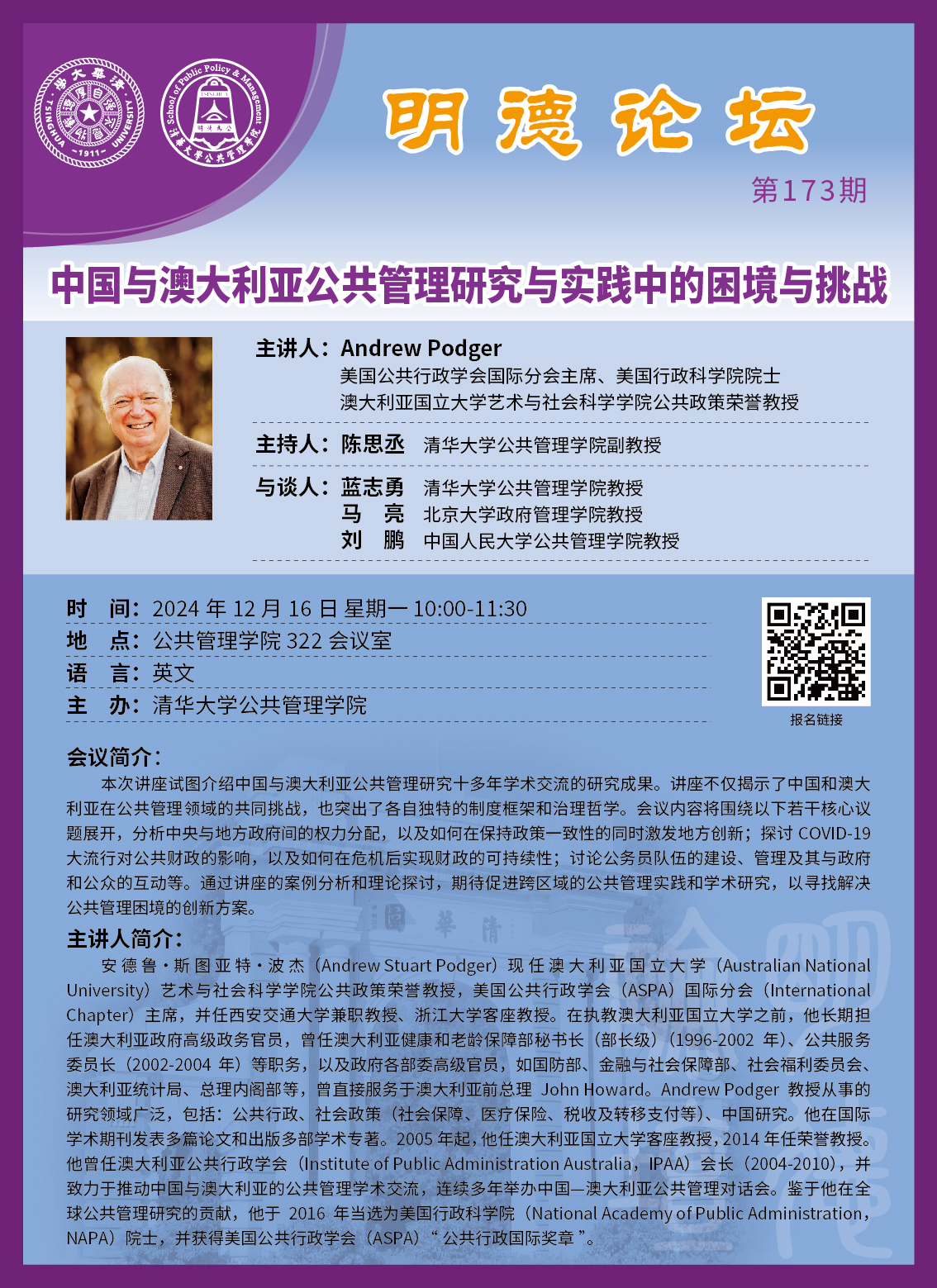 明德论坛第173期:中国与澳大利亚公共管理研究与实践中的困境与挑战(2024年12月16日 星期一 10:00-11:30)