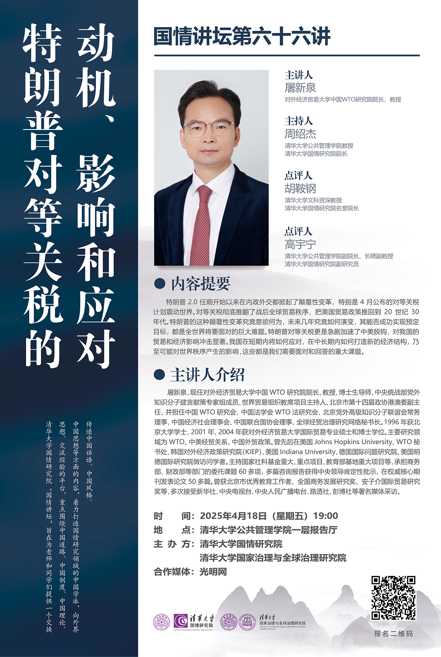 国情讲坛第66讲|屠新泉:特朗普对等关税的动机、影响和应对(2025年4月18日 星期五 19:00-21:00)