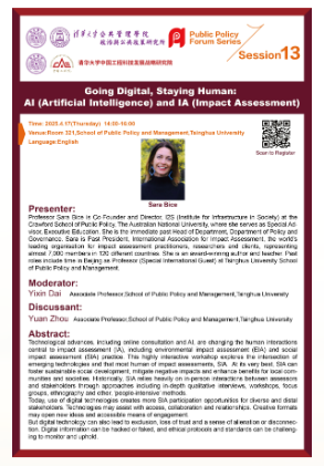 公共政策讲堂第13期:Going Digital, Staying Human: AI (Artificial Intelligence) and IA (Impact Assessment)(4月17日 星期四 14:00-16:00)