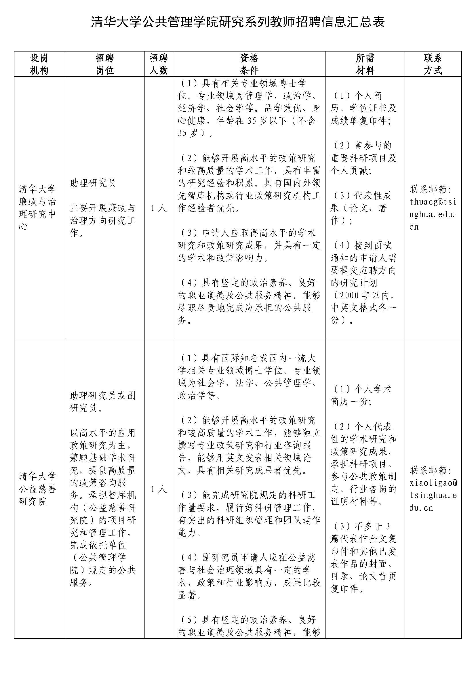 清华大学公共管理学院研究系列教师招聘信息汇总.xlsx