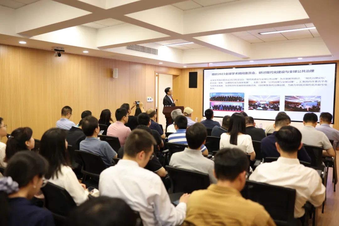 朱旭峰首先表达了对参加此次活动,以及与各位院友、校友重逢的喜悦之情,并向长期支持学院的上海校友和上海公管专委会致以诚挚的感谢。接着,朱旭峰向现场校友汇报了学院在去年取得的最新成就,涵盖学科与队伍建设、人才培育与培训、科研与智库建设、国际交流与发展以及院友工作等方面。