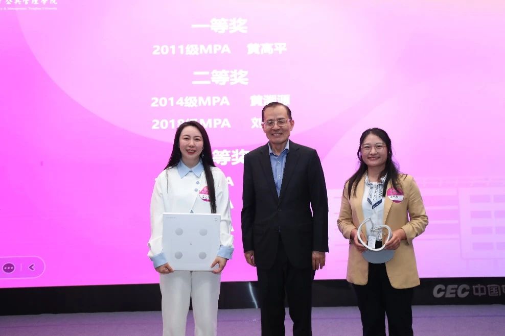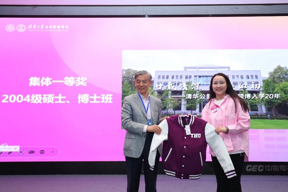 活动最后是激动人心的校庆云祝福、健步走活动颁奖仪式。校庆前夕,学院院友办广泛征集云祝福献礼清华113校庆,并且号召全体公管人在校庆期间完成113公里健步走,争取至少为祖国健康工作五十年。云祝福征集活动启动以来,收到包括手写祝福、短视频和摄影作品在内的多份投稿,并通过线上投票的方式确定了获奖作品。健步走收到共52位院友、师生完成的113公里“小目标”,所有参与者累计里程超过10000公里。彭宗超宣布获奖名单,薛澜和于安分别为云祝福、健步走活动获奖代表颁奖。
