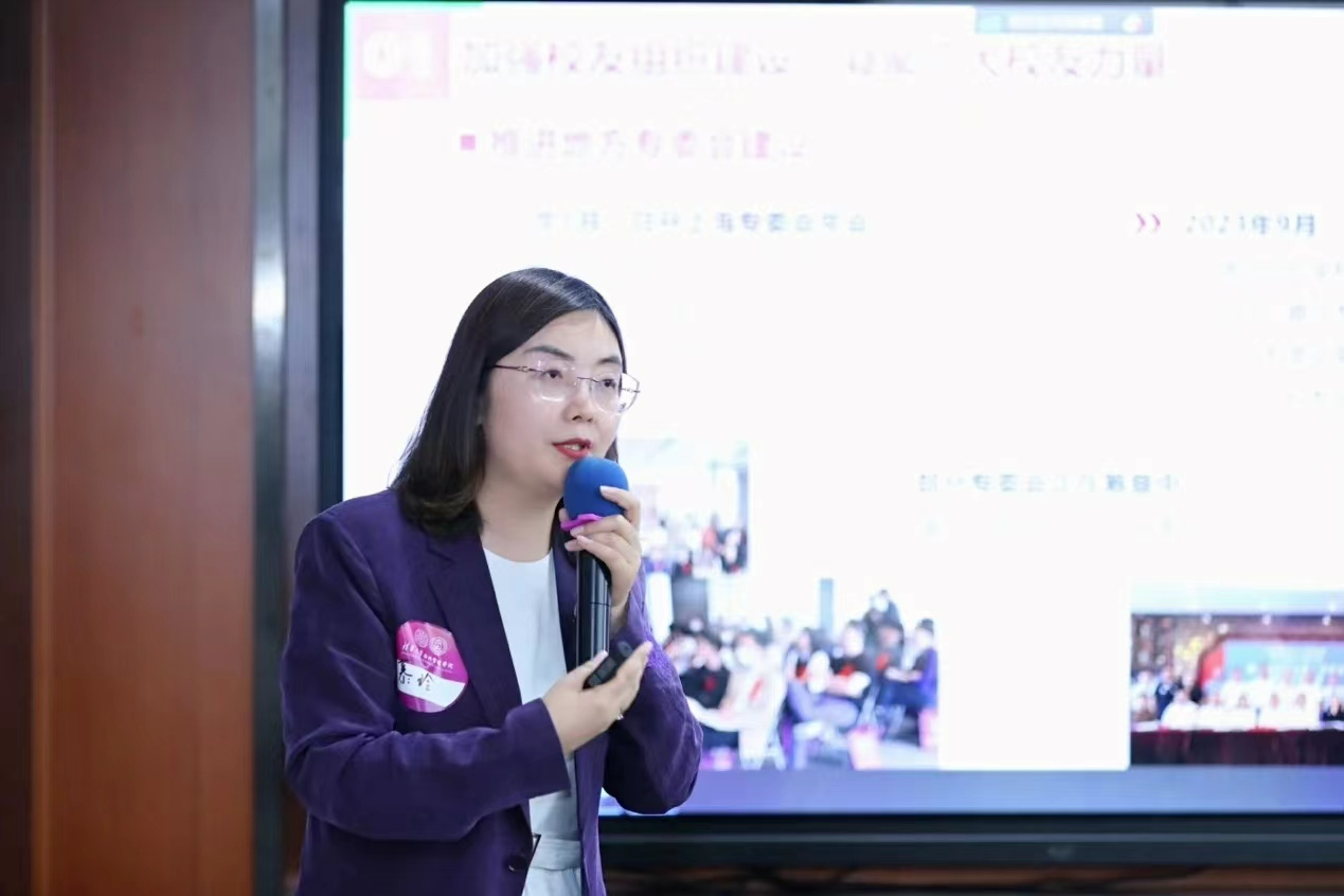 慕玲首先代表秘书处进行年度工作汇报。她围绕加强校友组织建设、服务校友终身学习、组织校友联络活动、开拓校友育人资源、开展校友故事宣传等方面开展的工作和取得的成果进行汇报。未来,秘书处将重点完善组织建设、运行机制、资源挖掘、活动创新等方面的工作,促进学院和校友的双向发展。