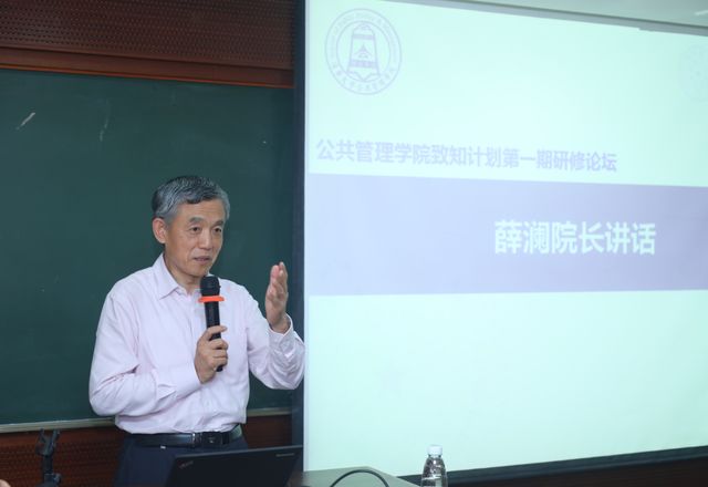 最后,公管学院院长薛澜讲话,他对清华校友总会、清华大学教育基金会一直以来对公管学院相关工作的关心和指导、对上海大发地产集团有限公司对致知计划的支持表示感谢,同时对前来参会的校友表示热烈欢迎。薛澜院长表示,学院近些年来发展迅速,这离不开校友们的大力支持,致知计划形式上并非简单的校友回炉学习,而是要利用好这样的机会进一步增进校友与学院老师之间、校友与校友之间的沟通与交流,从而为国家发展和社会进步贡献“清华公管力量”。